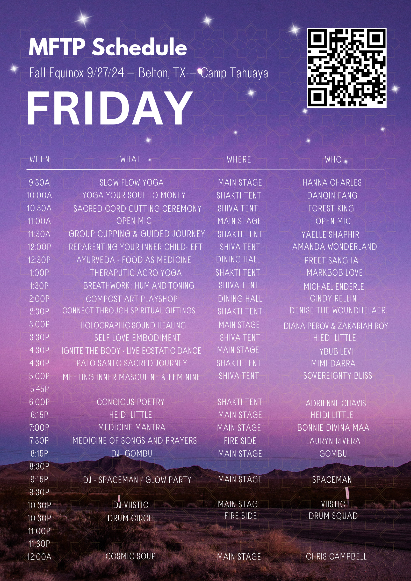 Mark your calendar for Friday at 10:00 AM in the Shakti Tent. Together, we'll explore a new, more conscious way of relating to money—one that honors your values, empowers your choices, and supports your highest self.